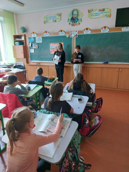Цікавий та змістовний захід під назвою «Безпечна дорога до школи-будь помітним на дорозі» для учнів 4 класів провели представники постійної комісії з питань роботи з молодшими школярами Учнівської ради, учениці 8-Б класу Полеванчук Поліна та Дяків Марта. У формі гри-вікторини дівчата повторили з молодшими школярами правила поведінки на проїжджій частині дороги, удосконалили знання основних дорожніх знаків. Діти щиро давали відповіді на питання: «Що означають жовті стрічки на шкільних рюкзаках?», « Які види транспорту знаєте?», « Де потрібно гратися, щоб не наражати себе на небезпеку?» та ін.. Найактивніші учасники гри-вікторини отримали солодкі призи.