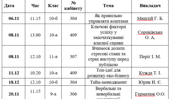 Цікаву лекцію про ази менеджменту послухали учні 10-11 класів.