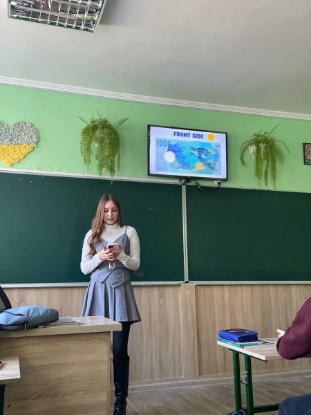 На уроці десятикласники презентували повідомлення про маловідомі валюти світу, переглянули відео про різні ставлення до грошей, способи і причини їх накопичення. Спілкуючись про роль грошей в їхньому житті, школярі зробили такі висновки: