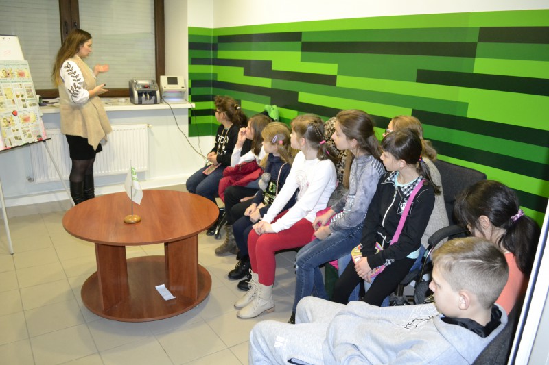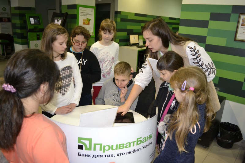 20.11.2017р. учні 5-Г класу разом із вчителем економіки Царик Л.В. побували на екскурсії у відділенні ПриватБанку, що на вулиці Макаренка. Вже вкотре гостинно керівник відділення Юрій Ігнатов та його колеги зустрічають маленьких клієнтів у своєму відділення. Діти з цікавістю слухали розповідь про роботу банку, дізналися, які посади є у працівників, яку роль виконує касир, як скористатися терміналом самообслуговування та банкоматом, як відрізнити справжні гроші від фальшивих та багато іншого. Після завершення екскурсії учні традиційно були нагороджені пам’ятними сертифікатами про відвідування банку та зробили гарні світлини на згадку.