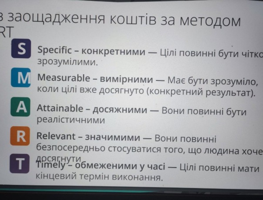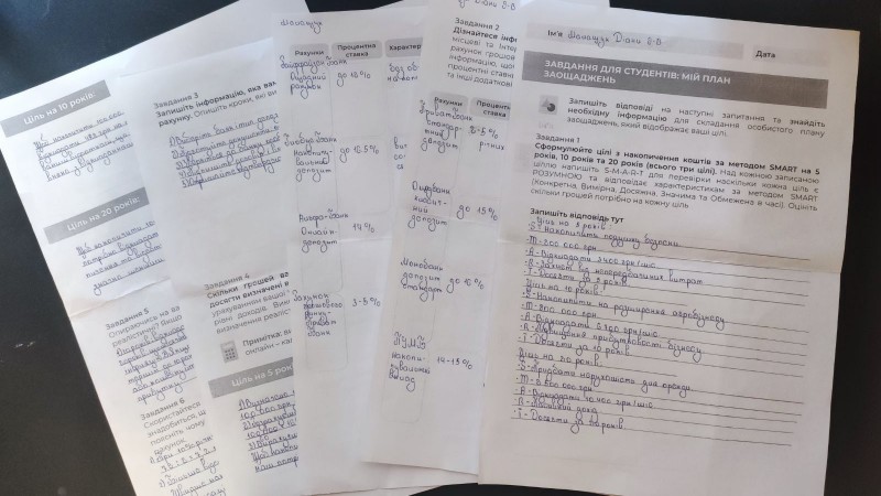 Підсумком вивчення розділу «Зайнятість і дохід» є розробка кожним учнем проекту «Мій план заощаджень», де дев’ятикласники визначають свої фінансові цілі за методом SMART і розробляють механізми досягнення цих цілей.
