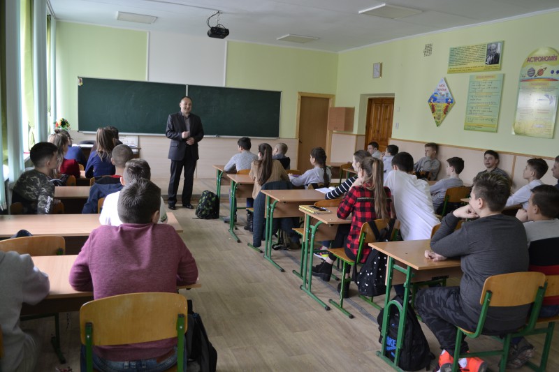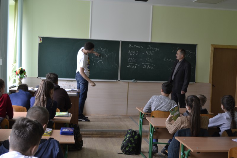 10 квітня 2019р для учнів 8-Б класу к.е.н. кафедри підприємництва, торгівлі та маркетингу ТНЕУ Вашків О.П. провів урок на тему «Підприємство - відповідальна фінансова діяльність». З цікавістю діти слухали гостя, відповідали на запитання, розв’язували логічні задачі, грали цікаві ігри підприємницького спрямування.