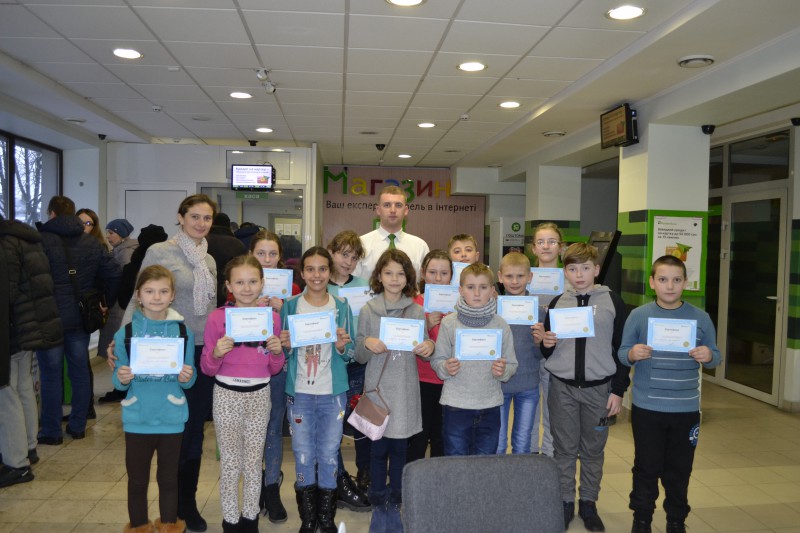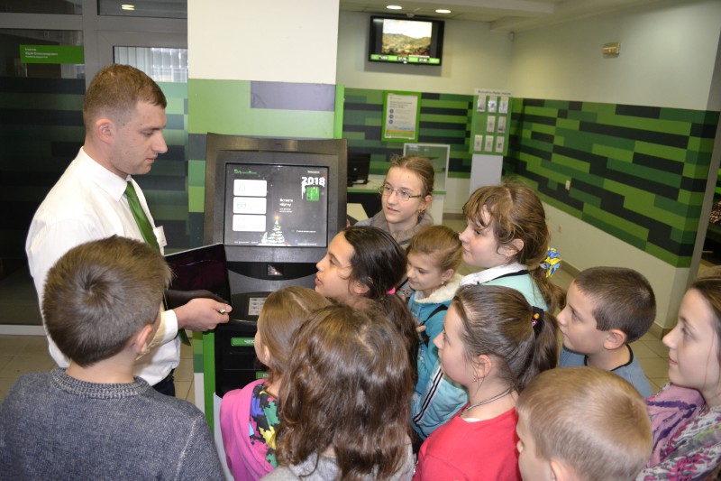 21.12.2017р. учні 5-Б класу разом із вчителем економіки Царик Л.В. побували на екскурсії у відділенні ПриватБанку. Вже вкотре гостинно зустрічають нас у цьому відділенні працівники та з цікавістю розповідають юним клієнтам про роботу банку. Діти ознайомилися з основними напрямками роботи працівників, навчилися користуватися терміналом, а також спробували себе у ролі касира, визначали справжність банкнот, ставили багато запитань щодо роботи відділення банку та його працівників. Учні були дуже задоволені проведеним часом на екскурсії і традиційно зробили фото на згадку.