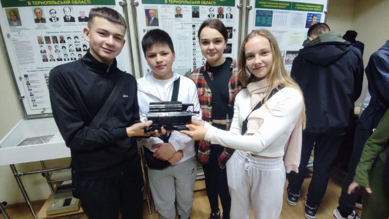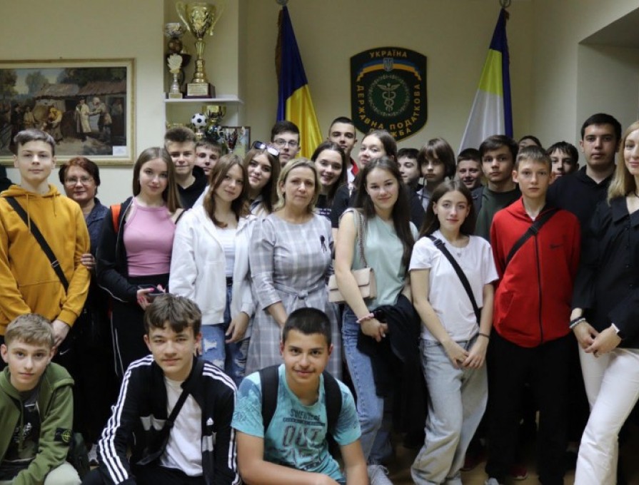 Головна державна інспекторка сектору інформаційної взаємодії ГУ ДПС в області Інеса Мендрунь розповіла про те, що таке податки, для чого і як їх справляли, в давнину і тепер, як зародилася і розвивалася податкова служба в незалежній Україні. Учні мали змогу наочно побачити форму податківців, типове робоче місце часів СРСР, а також оргтехніку кінця ХХ – початку ХХІ ст., якою користувалися працівники, і, навіть, потримати її в руках.
