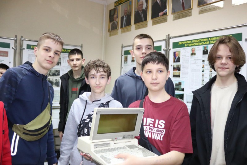 Найбільший інтерес викликала копія срібної гривні ХІ – ХІІІ ст. (вагою 155 г і найвищої проби), а також оригінали платіжних засобів ХХ. Під час екскурсії в Центр обслуговування платників начальник Тернопільської ДПІ Володимир Гузенков ознайомив восьмикласників із послугами, які там можна отримати.