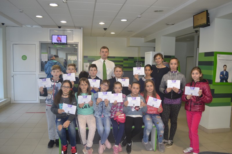 08.11.2018. учні 5-В класу разом із Царик Л. В. відвідали екскурсію до місцевого відділення ПриватБанку. З цікавістю діти слухали про роботу працівників банку, про основні завдання, які здійснюються у відділенні. Розглядали зразки грошей, вчилися їх рахувати на спеціальній машині для зчитування, ознайомилися із картою Юніора. Діти були задоволені побаченим і почутим.