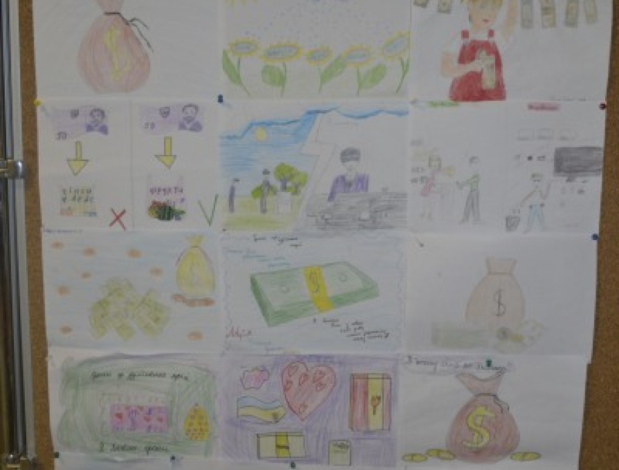 05.11.2018 учні 2-4 класів разом із вчителями фінансової грамотності Дроб Л.С. та Царик Л.В. представили виставку дитячих малюнків «Гроші в житті людей». Діти змалювали своє ставлення до грошей, образна висловили свою думку про те, як можна ними користуватися і на що витрачати. Деякі малюнки були виготовленні у формі вітальних листівок з побажаннями «багато грошей у кожну сім’ю».