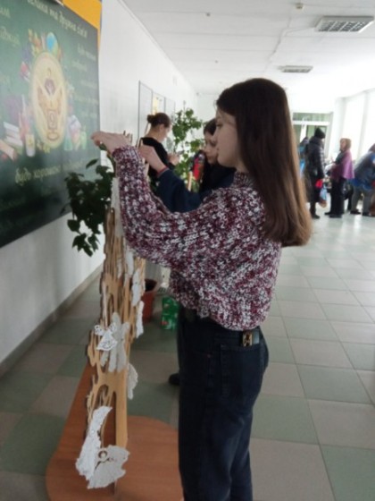 Вчитель Захарчук Емілія Орестівна з учнями 9-А та 9-Б на уроках трудового навчання виготовили Ангелів з ниток та намистин у техніці макраме та долучилися до Всесвітньої тихої акції « Ангели пам'яті», вшанували Героїв Небесної Сотні, які боролися за незалежну, міцну, демократичну державу, європейське майбутнє України.