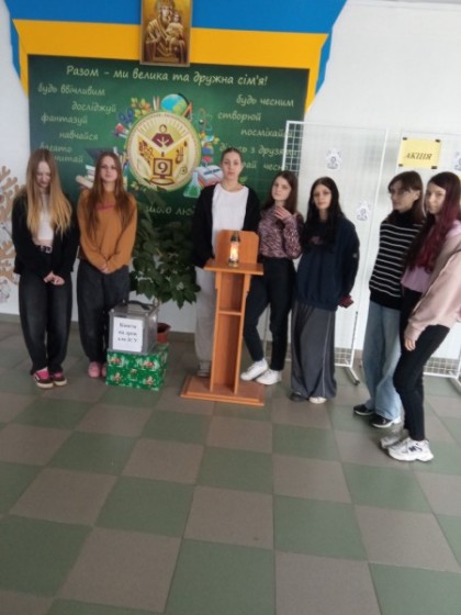 Події лютого 2014 року стали трагічними сторінками в історії нашої країни. Упродовж трьох днів було убито більше ста кращих синів і дочок України. Люди гинули від жорстокості, побиття, куль, катування. Надто важко було усвідомити розумом і серцем, що той, з ким ти щойно спокійно розмовляв і ділився горнятком чаю, тепер лежить перед тобою, стікаючи кров'ю. У вестибюлі школи запалили свічку та розвішали Ангелів на деревах.