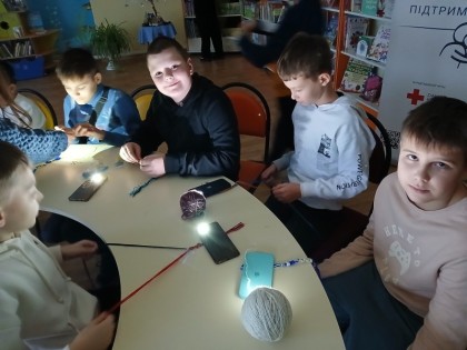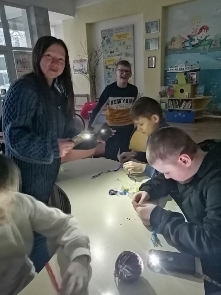 З нагоди Дня волонтера учні 5-Г класу разом із класним керівником Вітою Копитко відвідали Тернопільську Центральну дитячу бібліотеку, аби доєднатися до благодійної акції "Добро в серці". Діти познайомилися з Галиною Жук – народним майстром та волонтером. Саме вона провела цікавий майстер-клас із виготовлення шерстяних браслетів-оберегів для наших захисників. Також позитивних емоцій додали патріотична руханка та читання вголос. І навіть вимкнення електроенергії не зупинило нас, адже ми рятувалися від темряви за допомогою ліхтариків.