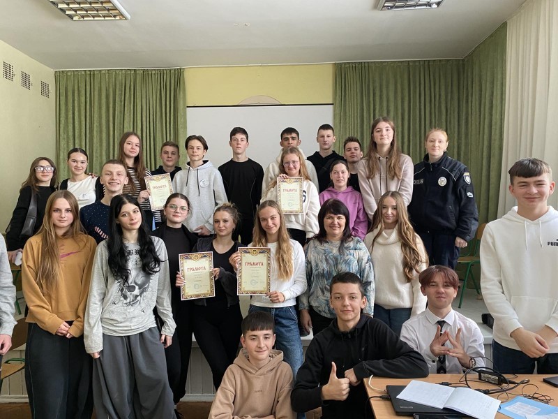 Учні 9-х класів проявили кмітливість, творчість і знання з правознавства. Вчимося граючись. З розривом в 0,5 балів І місце виборола команда 9-А класу " Леви права", ІІ місце посіла команда 9-В класу " Захисники права", ІІІ місце зайняли команди 9-Г і 9-Б класу. Головою жюрі була капелан поліції Сєчкіна Катерина.