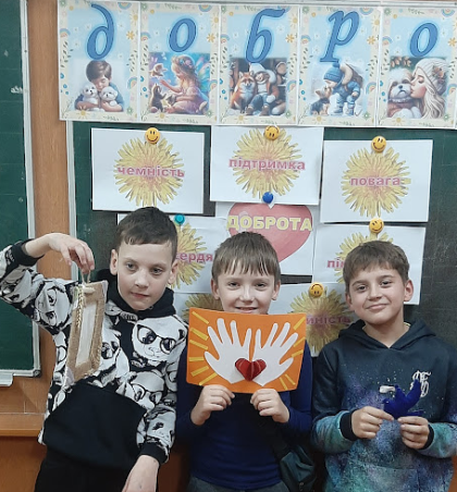 13 листопада, до Всесвітнього дня доброти, учні 4- А класу провели особливу годину спілкування « Добро починається з тебе». Четвертокласники грали цікаві ігри, відгадували кросворди, загадки . Діти розмірковували, що таке добрі справи та як важливо вміти їх творити. Під час години спілкування школярі намагалися пізнати суть добра та наповнити ним своє серце. Учні власноруч виготовили сувеніри добра , подарували їх один одному та поділилися своїм теплом. Діти побажали гарного настрою й веселого дня своїм однокласникам. Нам варто спробувати виявляти доброту до всіх і повсякчас. Для цього не потрібні спеціальні дати.