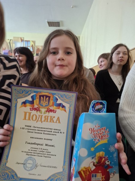 За велике й добре серце Міланка отримала подяку від адміністрації школи і солодкий подарунок.