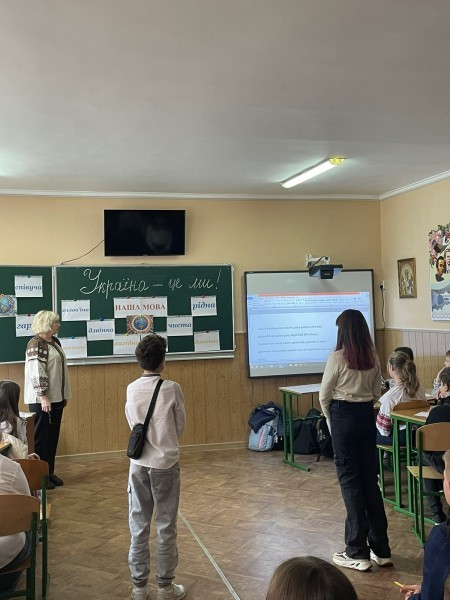 Учні продемонстрували не тільки свої знання, а й артистичні вміння: розгадували мовні шаради, відгадували загадки, за рухами з’ясовували значення фразеологізмів, за поданим початком продовжували прислів’я, співали пісні, декламували вірші про мову, а також переглянули презентацію «Цікаве про українську мову».