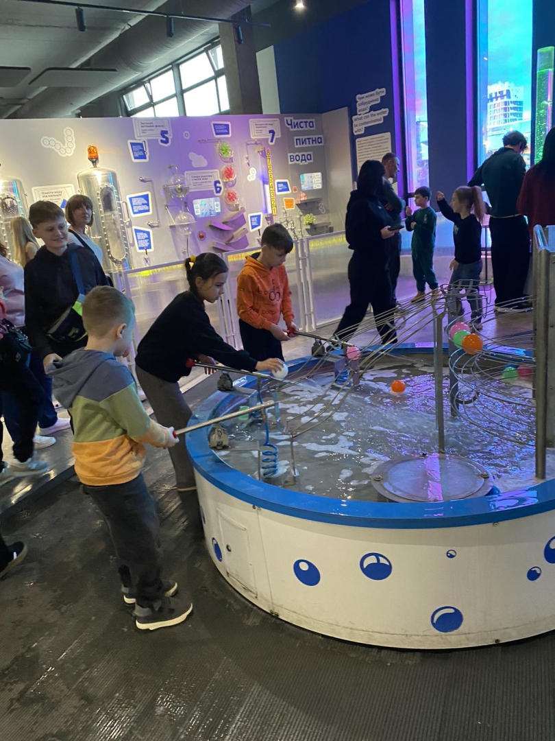 Після смачного обіду школярі попрямували у Музей науки, інтерактивний простір, де досліджували навколишній світ і сучасну техніку через гру та експерименти . Залюбки займалися науково-ігровими розвагами: взаємодіяли з експонатами, запускали механізми , щоб пізнавати закони фізики та природи в ігровій формі.