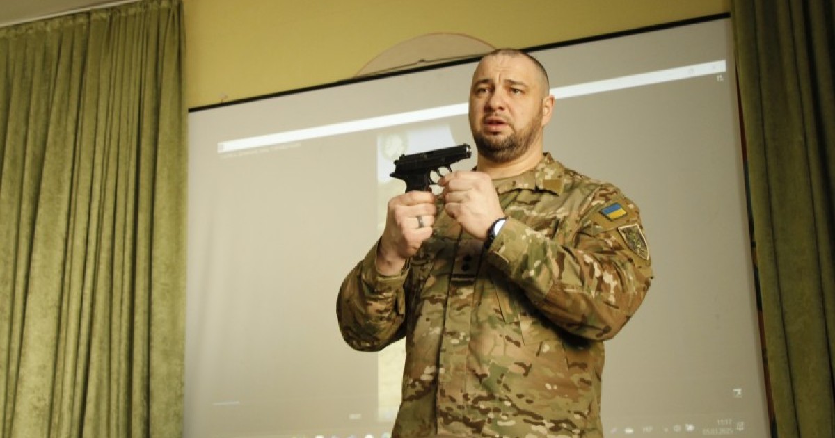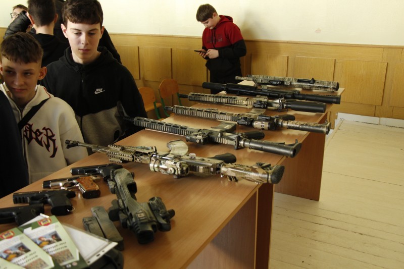 Роман Михайлович продемонстрував зброю, з якою працюють курсанти, та поділився своїм досвідом, відповідаючи на всі запитання майбутніх абітурієнтів.