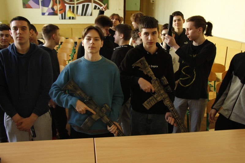 Учні 9-х класів мали унікальну можливість зустрітися зі курсантами Тернопільського професійного коледжу з посиленою військовою та фізичною підготовкою, а також із заступником начальника з військової фізичної підготовки, підполковником Мельником Романом Михайловичем (позивний "Мамонт").
