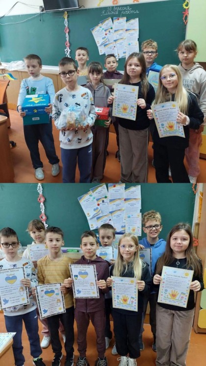 Також дітям передали спеціально зібрані бокси допомоги, які найближчим часом будуть відправлені захисникам.
