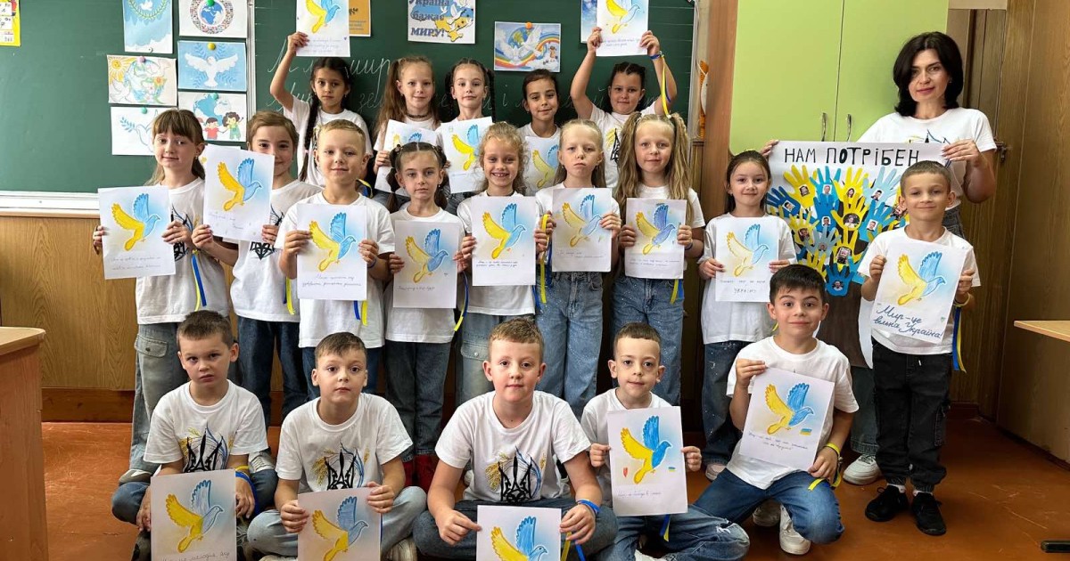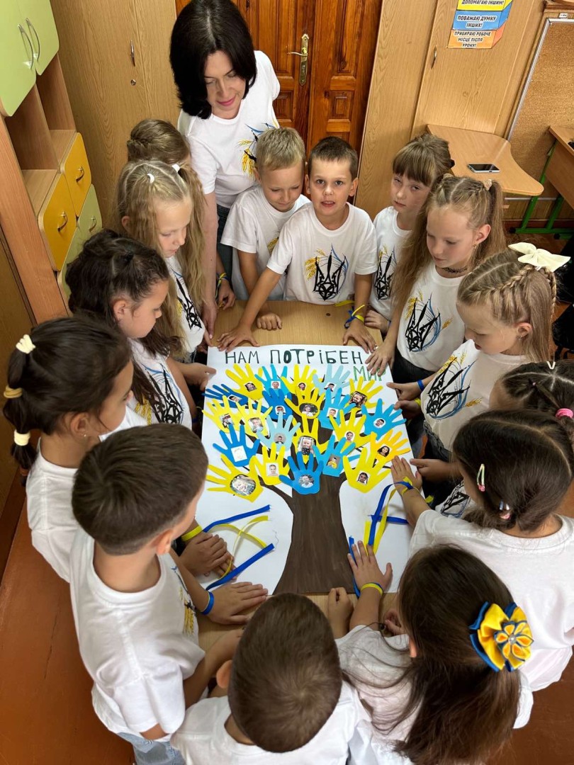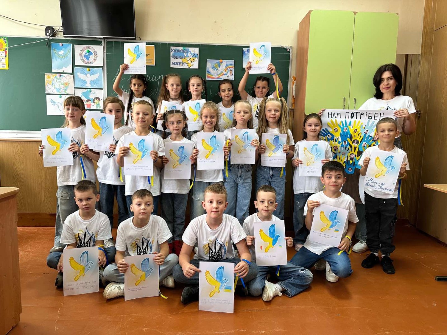 Учні 2-А класу долучилися до прагнення усіх українців щодо збереження миру на планеті Земля. Вони розмалювали голубів і кожен написав свій заклик до миру. Діти вирізали свої долоньки , клеїли фотографії , а потім колективно створювали панно «Нам потрібен мир». Обовʼязковою умовою для учнів у цей день було те, що вони одяглися в однаковий одяг з українською символікою.