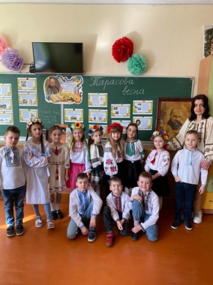 З нагоди відзначення 211 річниці з Дня народження Т. Г. Шевченка, учні 1-А класу декламували рядки поезій поета, виконували цікаві завдання, презентували малюнки до творів Кобзаря, виконували пісню на слова «Тече вода з- під явора». Діти залюбки відповідали на запитання вікторини, слухали цікаві факти його біографії .