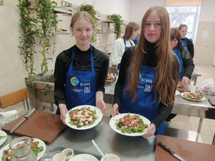 На другому занятті учні Заочної природничої школи Пелехата Єлизавета та Мартинюк Тетяна (9 -А) з вчителькою Царик Л.В. відвідали майстер-клас «Принципи здорового харчування». Цікавий та «смачний» захід провела Мелешко Н. М., яка розповіла про правильне та здорове харчування. І вишенькою на торті стало самостійне приготування салату «Цезар» та освіжаючого напою. Потім усі смакували власноруч приготовлену страву. Захід проходив у Галицькому коледжі ім. В’ячеслава Чорновола. Щиро дякуємо за цікаві зустрічі.