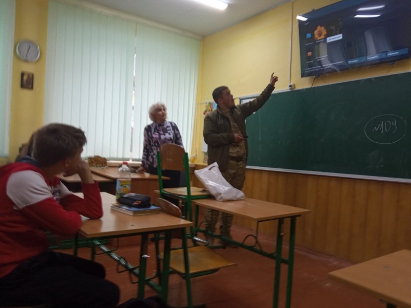 У 8-В класі 3 жовтня відбулася зустріч з начальником штабу - заступником командира військової частини А 4048 Андрієм Захарчуком, який є випускником нашої школи.