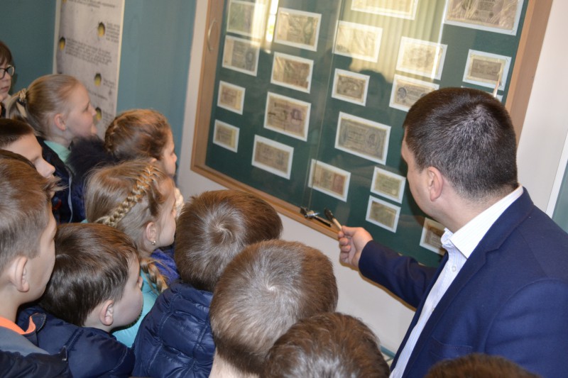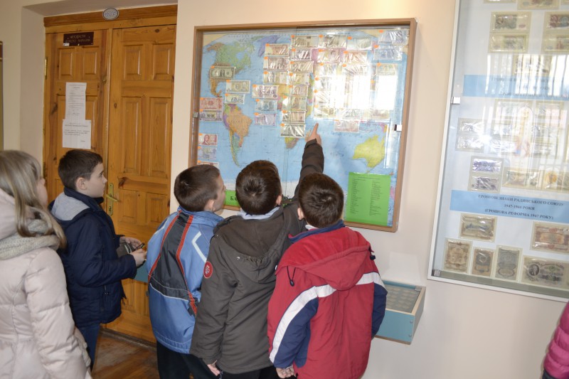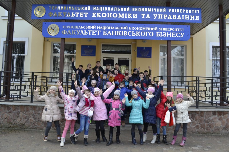 21.03.2017р. учні 5-А класу разом із вчителем економіки Царик Л.В. провели цікаву екскурсію в ТНЕУ. Оскільки п’ятикласники нашої школи, вивчають такий предмет як «Подорож у світ економіки», їм стало цікаво познайомитися із навчальним закладом нашого міста, де навчаються молоді економісти і банкіри. Кандидат економічних наук Рудан Віталій Ярославович показав чудову колекцію грошей, зібраної на факультеті банківського бізнесу. Діти з захопленням слухали розповідь про утворення грошей, про їх зовнішні зміни, а також розглядали політичну карту світу де були розміщені грошові одиниці багатьох країн. В кінці екскурсії учні зробили фотографії на пам’ять: стендів, грошей, пам’ятних монет тощо.