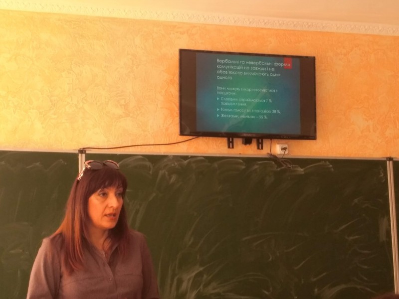 18 березня 2019 року для учнів 9-А класу був проведений тренінг на тему: «Бізнес-комунікації: вербальні і невербальні». Урок провела к.е.н., доцент кафедри менеджменту у виробничій сфері ТНТУ ім. І. Пулюя Гарматюк Оксана Олегівна. Вона пояснила учням, що таке комунікація, які є її види та значення. Розвінчала 7 міфів і пояснила 10 правил успішного спілкування. Провела гру, під час якої учні зрозуміли, що необхідно чітко і точно пояснювати завдання, і як при подальшому спілкуванні губиться частина інформації. Фіналом тренінгу став фільм про особливості «невербальної комунікації», яка часом дає більш точну інформацію про людину або висвітлює приховані мотиви та настрої.