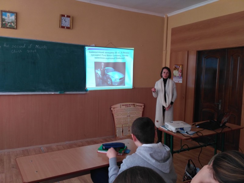 Для кращого унаочненнянових знань, вона запропонувала «10 найбільш високооплачуваних топ-менеджерів світу за 2016 рік». Особливо учням запам’яталися слова Лі Якокка – найвидатнішого менеджера світу, який виділив чинники успіху компаній. Ось, деякі з них: