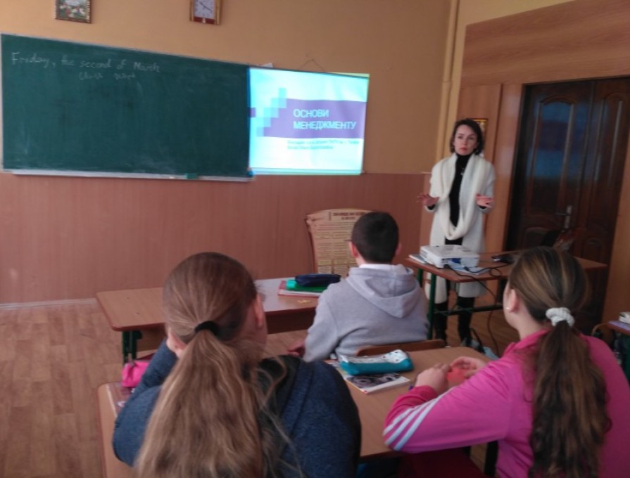 2 березня 2018 року в гості до учнів 9-В класу завітала к.е.н., доцент кафедри «Менеджменту у виробничій сфері» ТНТУ ім. І. Пулюя Мосій Ольга Бориславівна. Вона ознайомила дев’ятикласників з особливостями професії менеджера. Протягом зустрічі була дана відповідь на основні питання: Що таке менеджмент? Хто такий менеджер?