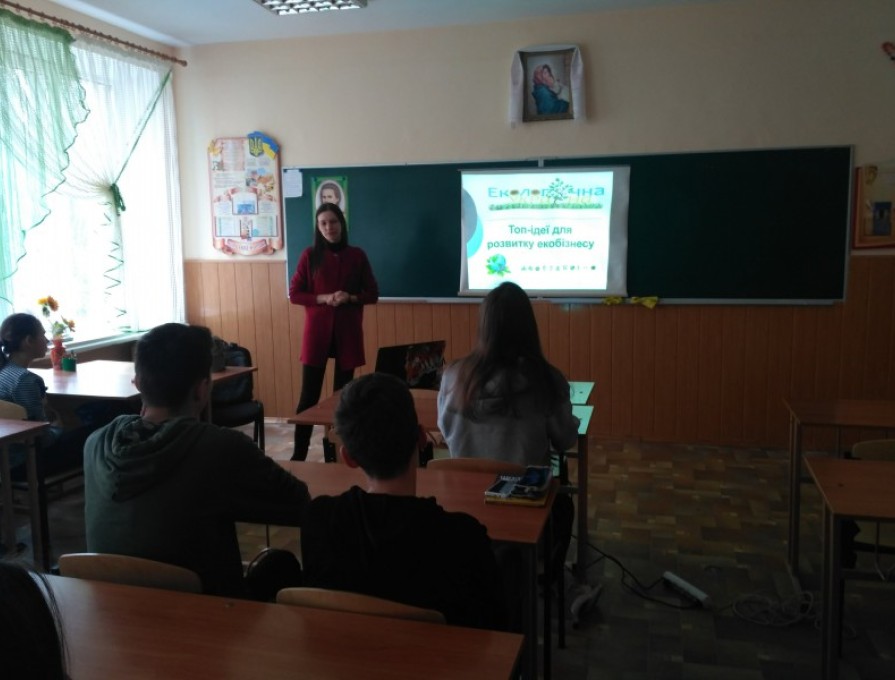 16.03. 2018 року в 10-А класі була проведена лекція к.е.н., доцентом кафедри менеджменту у виробничій сфері ТНТУ ім. І. Пулюя Куждою Тетяною Іванівною на тему: «Топ-ідеї для розвитку еко-бізнесу».