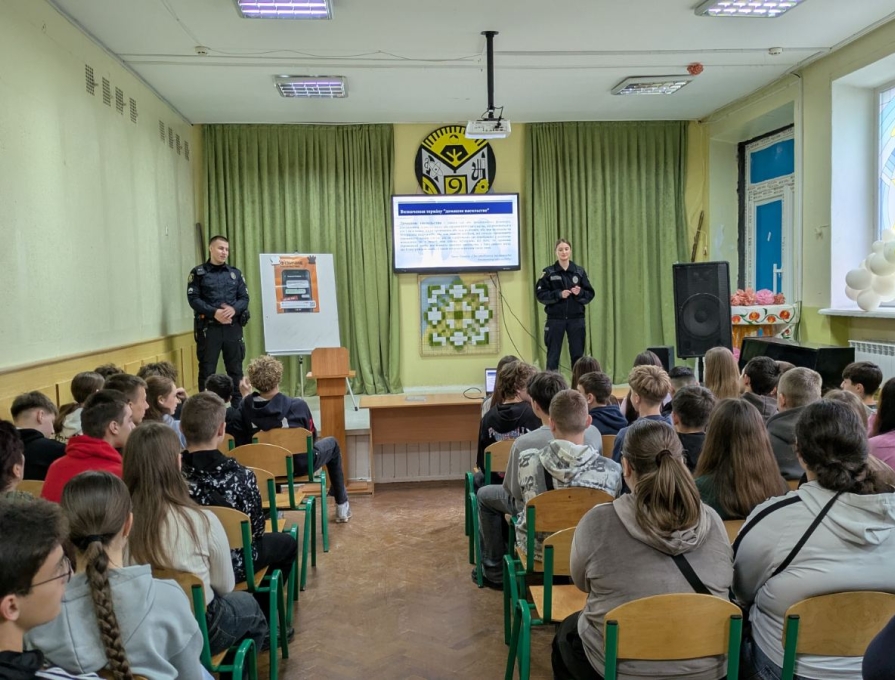 У школі відбулася змістовна та надзвичайно важлива зустріч учнів 9-х класів і педагогів із капралом поліції сектору ювенальної превенції ТРУП Павлів Ольгою Андріївною. Темою заходу стало запобігання різним формам насильства та формування безпечного освітнього середовища.