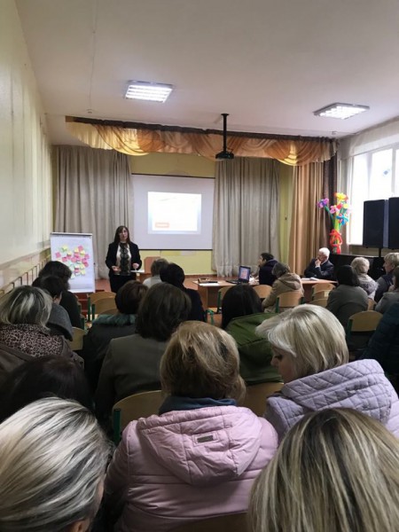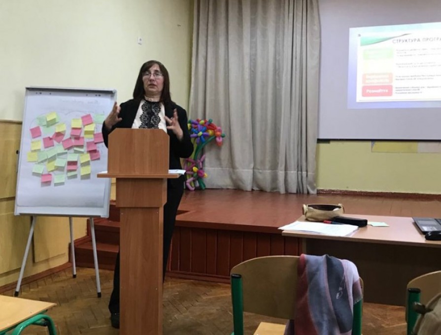Під час цього заходу Галина Євгенівна ознайомила вчителів із програмою тренінгових занять «Не смійся з мене», яка призначена для дітей підліткового та юнацького віку і успішно впроваджується у багатьох країнах світу. У цій програмі реалізуються базові методологічні принципи зміни поведінки. Вона містить спеціально розроблений комплекс заходів, спрямованих на попередження та/або подолання конкретної соціальної проблеми або декількох пов’язаних між собою проблем шляхом підвищення рівня поінформованості, а також розвитку відповідних умінь і навичок у її учасників.