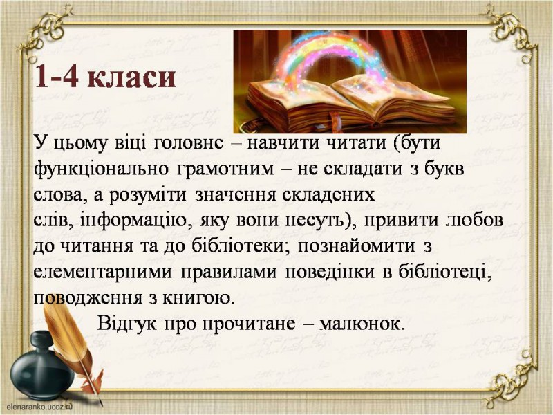 1. Він швидше для вас, як для батьків, хоча його можна використовувати і для життя бібліотеки. Увага та цікавість дитини.