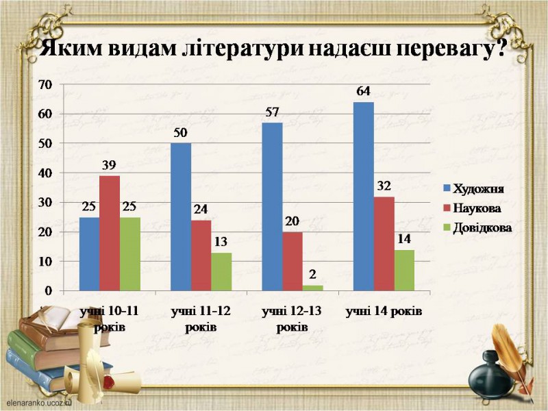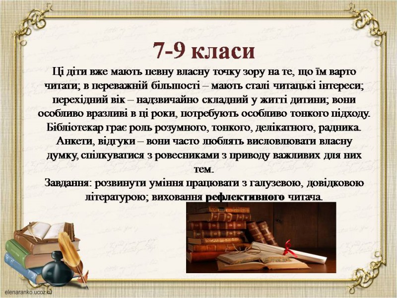 Ось чому і виникла потреба розгляду саме цієї теми - індивідуального підходу, пошук ефективних способів, психологічних прийомів та безпосередньо роботи шкільного бібліотекаря з дітьми різної вікової категорії.