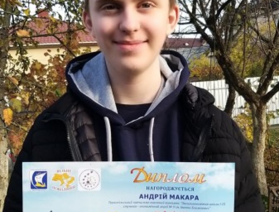 Макара Андрій, учень 9-Б класу зайняв 1 місце у конкурсі "Моя мрія" за темою робіт "Доброго вечора, ми з України" в номінації "Образотворче мистецтво. Янголи -охоронці", м. Київ.