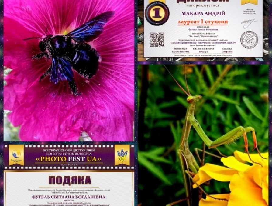 Макара Андрій , учень 10-Б класу прийняв участь у конкурсі "PHOTO FEST UA" від Творчої Агенції «UaFest».На конкурс представив дві роботи "Бджола-тесляр" та "Богомол". Був нагороджений дипломом лауреата 1 ступеня, а також подякою була нагороджена Фугель Світлана Богданівна