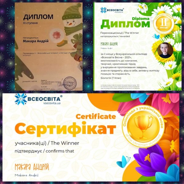 Макара Андрій, учень 7-б класу прийняв участь у таких онлайн кокурсах: