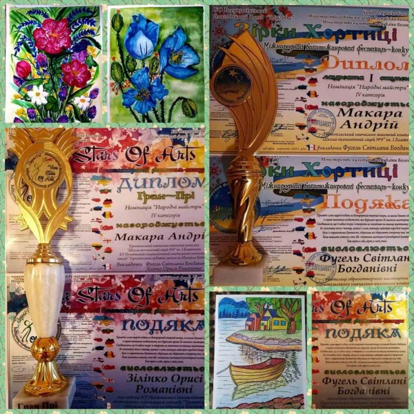 3.У Міжнародному багатожанровому фестивалі-конкурсі"Viva Stars Of Arts", "Зірки лагідної країни ", " Зірки Хортиці", від БО Всеукраїнського благодійного фонду "Злагода."Брав участь у номінації образотворче мистецтво та був нагороджений Гран-Прі, дипломами лауреата I ступеню, кубками, а також подякою була нагороджена вчитель ТНВК ШЕЛ №9 ім.І.Блажкевич Фугель Світлана Богданівна та вчитель художньої школи ім.Михайла Бойчука Зілінко Орисі Романівна.