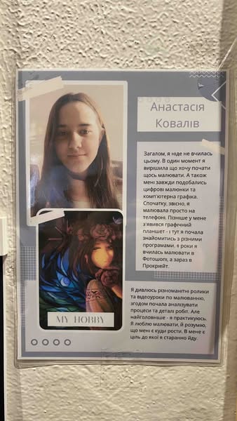 Що особливого можна побачити у нашій школі? Приходьте до презентаційної локації на третьому поверсі, щоб побачити виставку робіт комп'ютерної графіки учениці 10-Б класу Насті Ковалів! Сповнені світла і таємничості, вони притягують погляд і надихають. Твори Насті демонструють її великий талант потретистки, її уміння передати стан і настрій зображуваних героїв. Пишаємося нашої талановитою ученицею і запрошуємо класних керівників приходити з учнями на перегляд робіт!