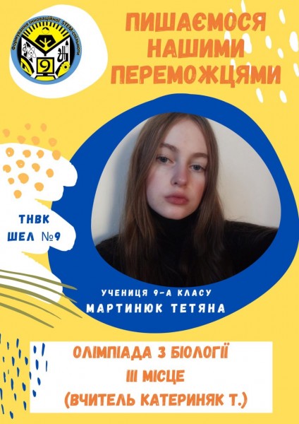 Перемоги учнів закладу освіти – це перемоги учителів та спільна радість усієї шкільної родини. Пишаємось їхніми успіхами! Бажаємо усіляких благ, оптимізму, наснаги до навчання, творчості та пізнання нового під керівництвом знаючих креативних учителів.